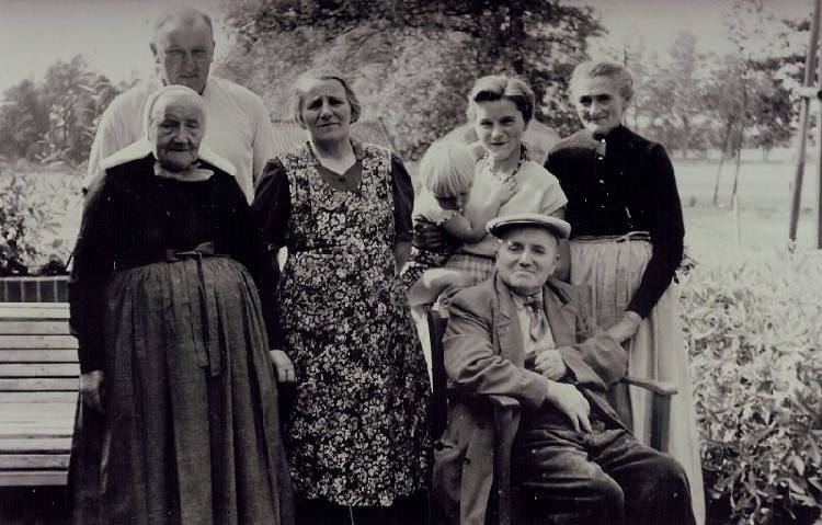 Familie Voortman Boven: Gerrit Jan Voortman. 2e rij staande: Dina Voortman-Reef. Geertruida Voortman-Bolten. Johanna Kamphuis-Voortman en Alberdina Voortman-Kolhoop, zittend: Hendrik…