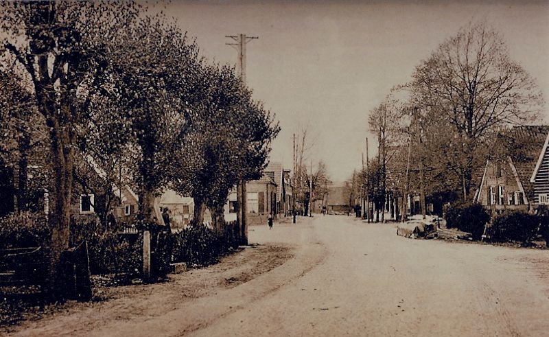Dorpsstraat Nauwelijks herkenbaar. maar het is de Dorpsstraat aan het begin van de twintigste eeuw. ter hoogte van de Werfstraat…
