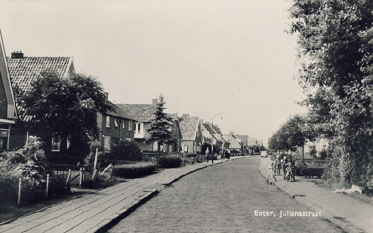 Dorpsstraat De Dorpsstraat van Enter als ansichtkaart voor vakantiegangers. Let op het oude VW-busje achteraan links.